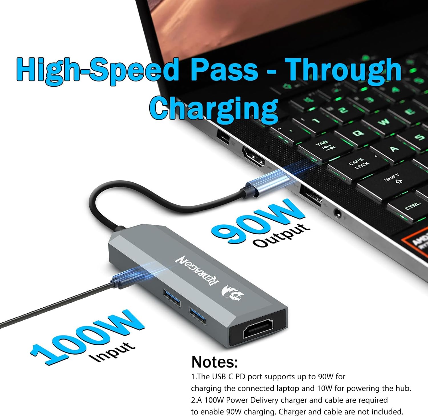 Einer der Hauptvorteile des 4-in-1-USB-C-Hubs mit 4K-60-Hz-HDMI-Splitter ist seine Fähigkeit, hochauflösende Videoausgabe zu liefern. Der HDMI-Anschluss unterstützt eine 4K-Auflösung bei 60 Hz und sorgt so für klare Bilder und flüssige Bewegungen.
