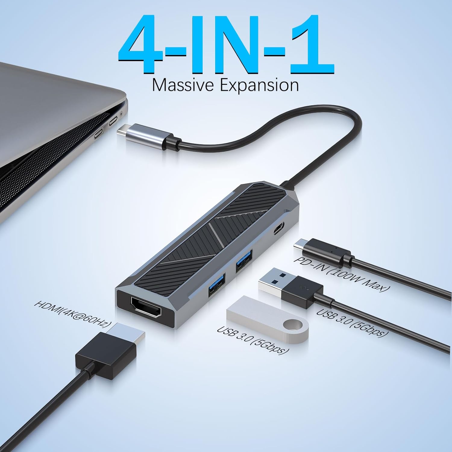 Da sich moderne Laptops und Tablets ständig weiterentwickeln, legen viele Hersteller Wert auf schlanke und leichte Designs. Während dieser Ansatz die Portabilität verbessert, verringert er häufig die Anzahl der verfügbaren Ports. Profis, Kreative und alltägliche Benutzer benötigen häufig zusätzliche Konnektivität zur Unterstützung von Displays, Speichergeräten und Peripheriegeräten. Der 4-in-1-USB-C-Hub mit 4K-60-Hz-HDMI-Splitter bietet eine praktische Lösung, indem er einen einzelnen USB-C-Anschluss in mehrere Hochleistungsanschlüsse umwandelt.