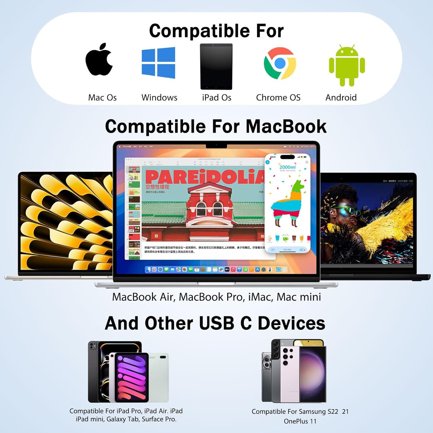 Der 4-in-1-USB-C-Hub mit 4K-60-Hz-HDMI-Splitter ist mit vielen modernen Geräten kompatibel, die mit USB-C-Anschlüssen ausgestattet sind, die die Videoausgabe unterstützen.