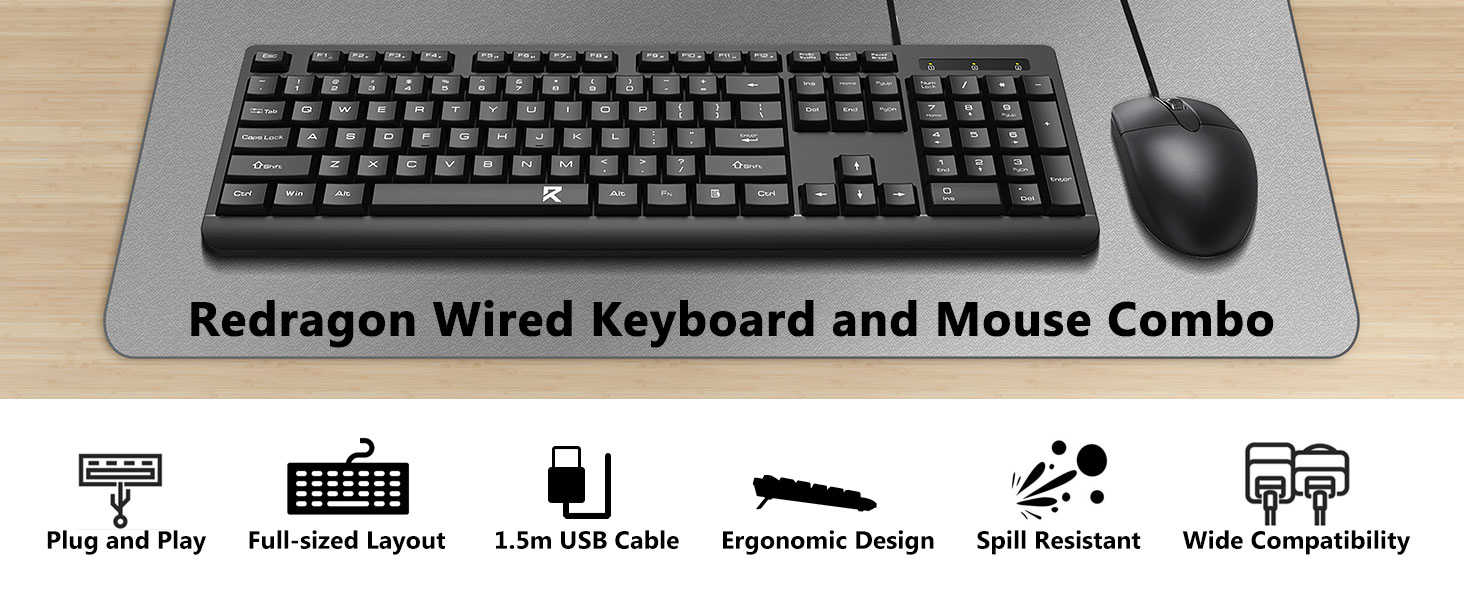 Die auf langfristige Zuverlässigkeit ausgelegte Tastatur und Maus bestehen aus langlebigen Materialien, die dem täglichen Gebrauch standhalten. Das klassische schwarze Finish ergänzt eine Vielzahl von Computer-Setups, von Büroarbeitsplätzen bis hin zu Heimschreibtischen.
