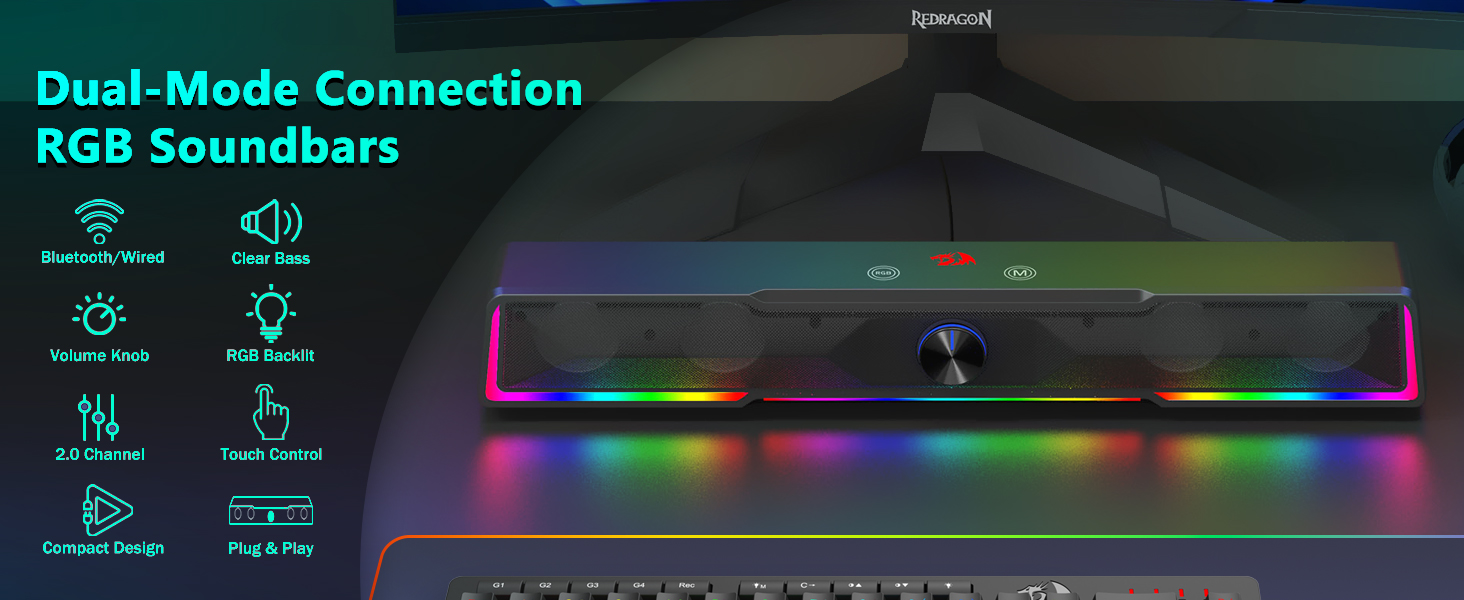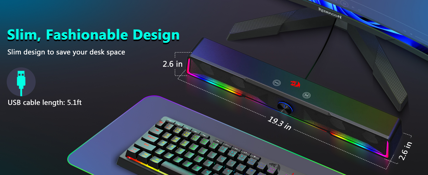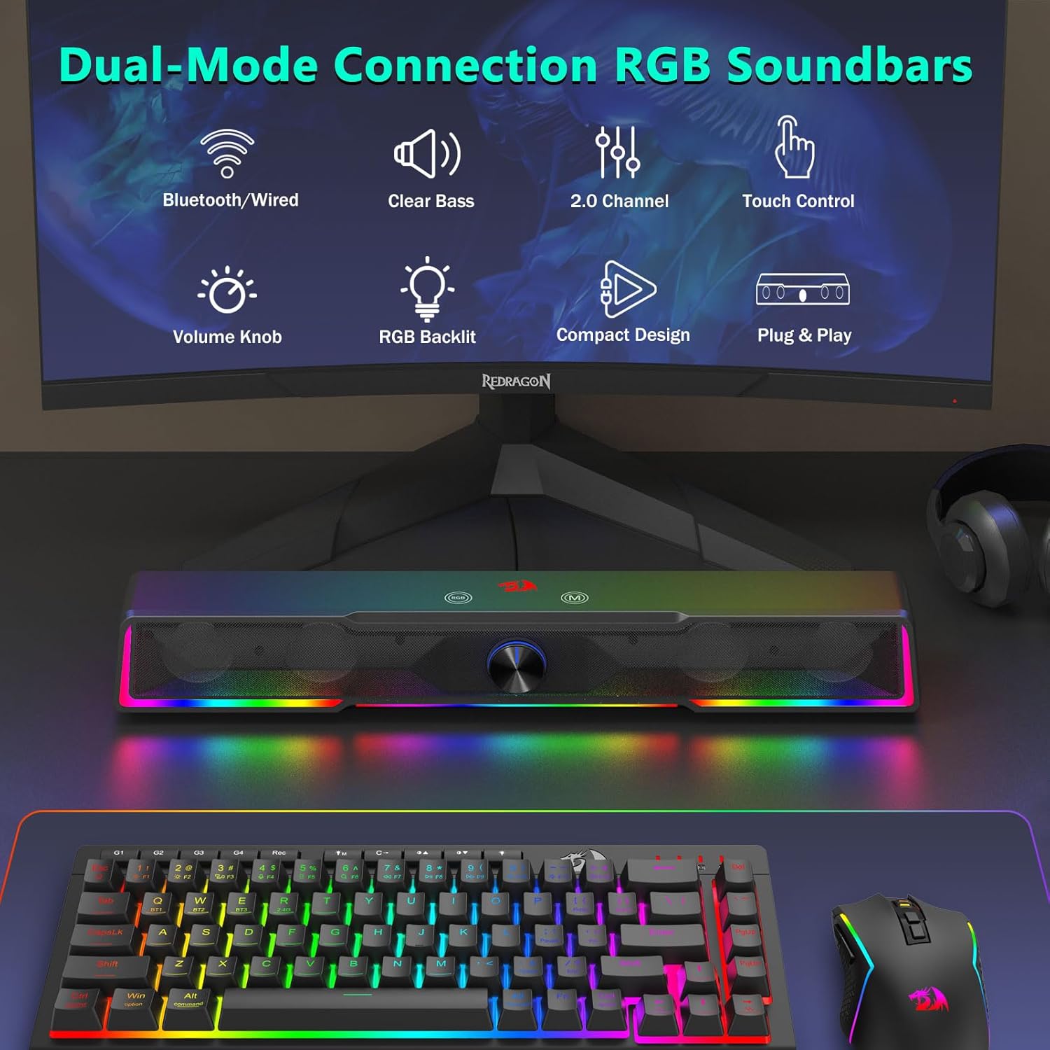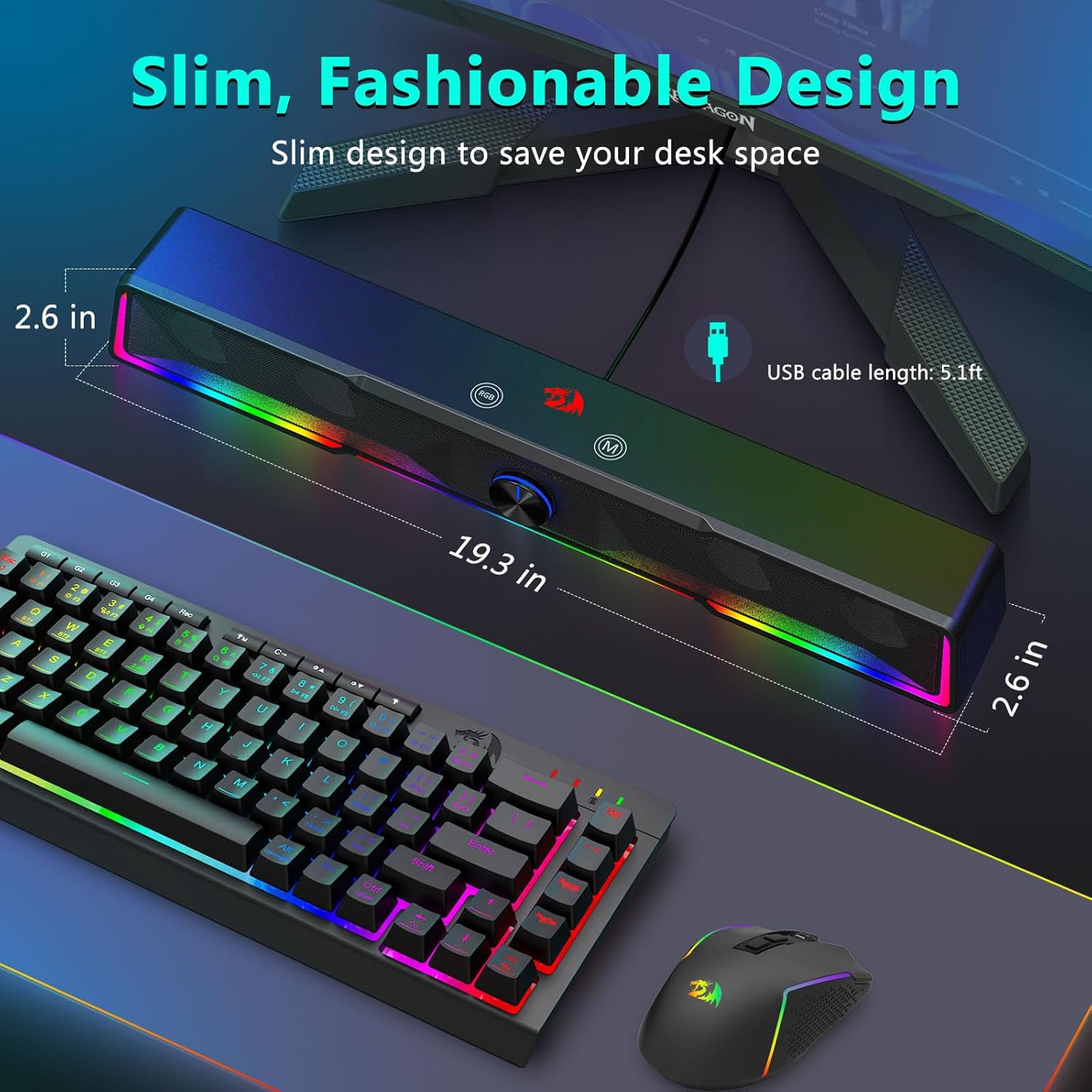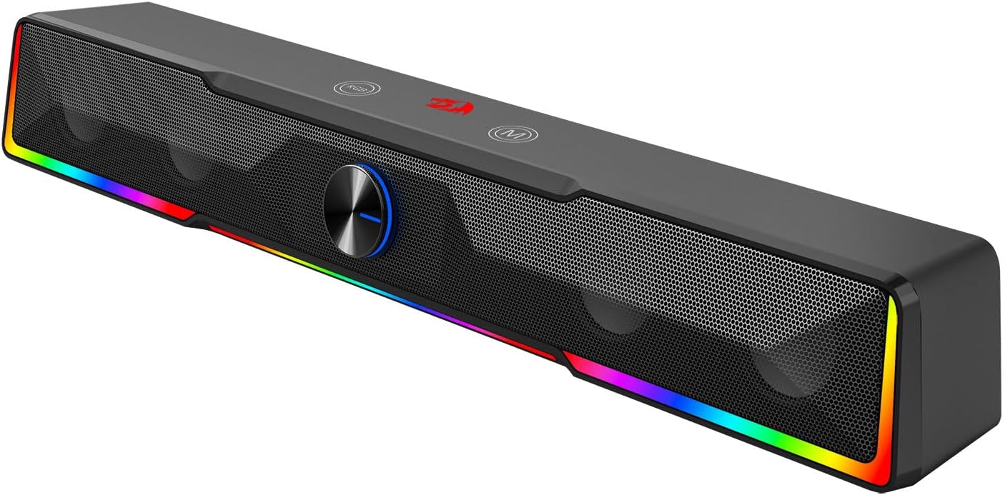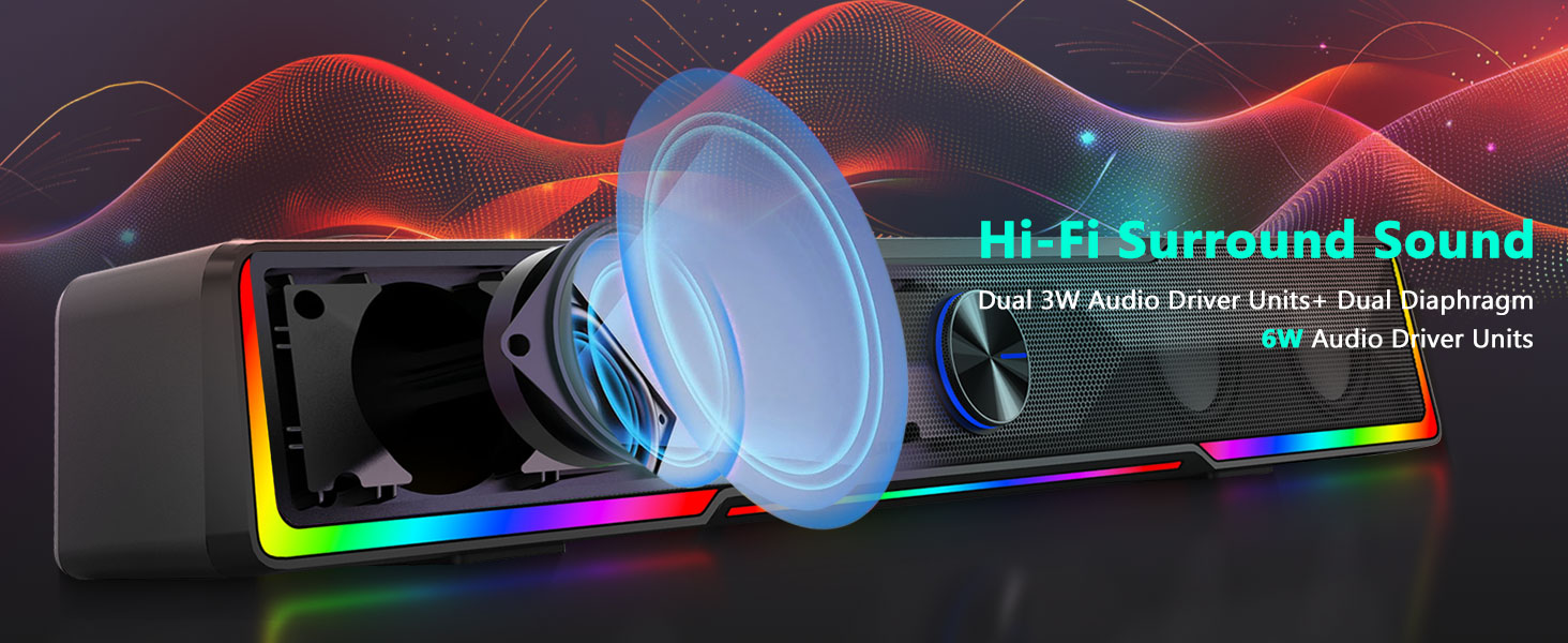 Platzsparendes Soundbar-Design Im Gegensatz zu herkömmlichen Lautsprechern, die große Bereiche auf beiden Seiten eines Monitors einnehmen, verfügt der schwarze GS516 Bluetooth/USB-Kabelverbindungs-Soundbar-Lautstärkeregler-Computerlautsprecher über eine schlanke Soundbar-Struktur, die bequem unter die meisten Computerbildschirme passt. Dieses kompakte Design trägt dazu bei, eine saubere und organisierte Schreibtischumgebung zu gewährleisten und gleichzeitig satten und beeindruckenden Klang zu liefern.