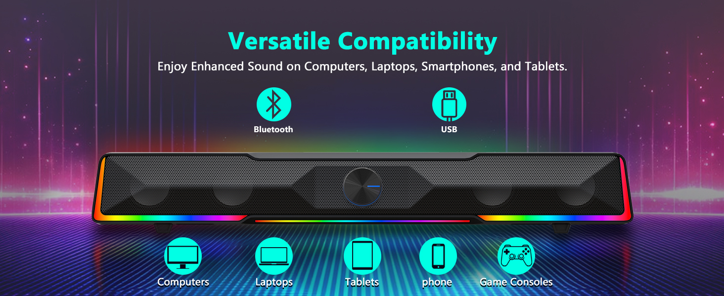 Kompatible Geräte Der schwarze GS516 Bluetooth/USB-Kabelverbindungs-Soundbar-Lautstärkeregler-Computerlautsprecher ist für den Einsatz mit einer Vielzahl von Geräten konzipiert. Zu den kompatiblen Geräten gehören typischerweise: