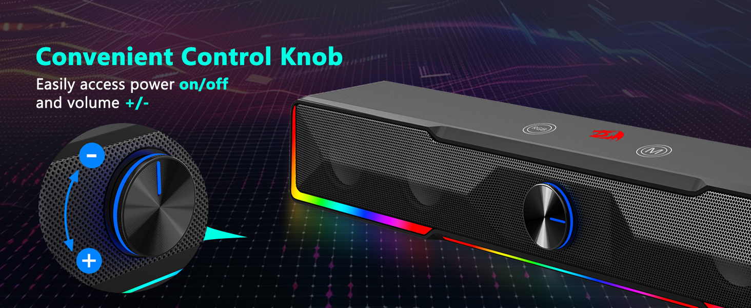 Reibungslose Steuerung des Lautstärkereglers Der integrierte Lautstärkeregler ist eine der praktischsten Funktionen des schwarzen GS516 Bluetooth/USB-Kabelverbindungs-Soundbar-Lautstärkeregler-Computerlautsprechers. Anstatt die Lautstärke über die Systemeinstellungen anzupassen, können Benutzer einfach den Knopf drehen, um die Lautstärke sofort zu erhöhen oder zu verringern. Diese taktile Steuerung verbessert die Benutzerfreundlichkeit bei Spielesitzungen, Musikwiedergabe und Videokonferenzen.