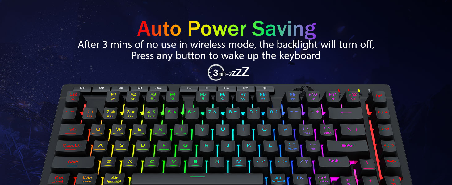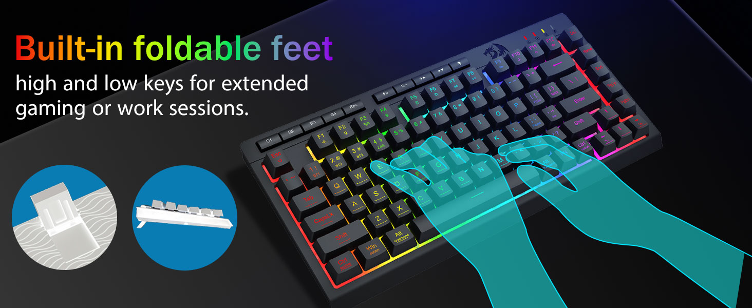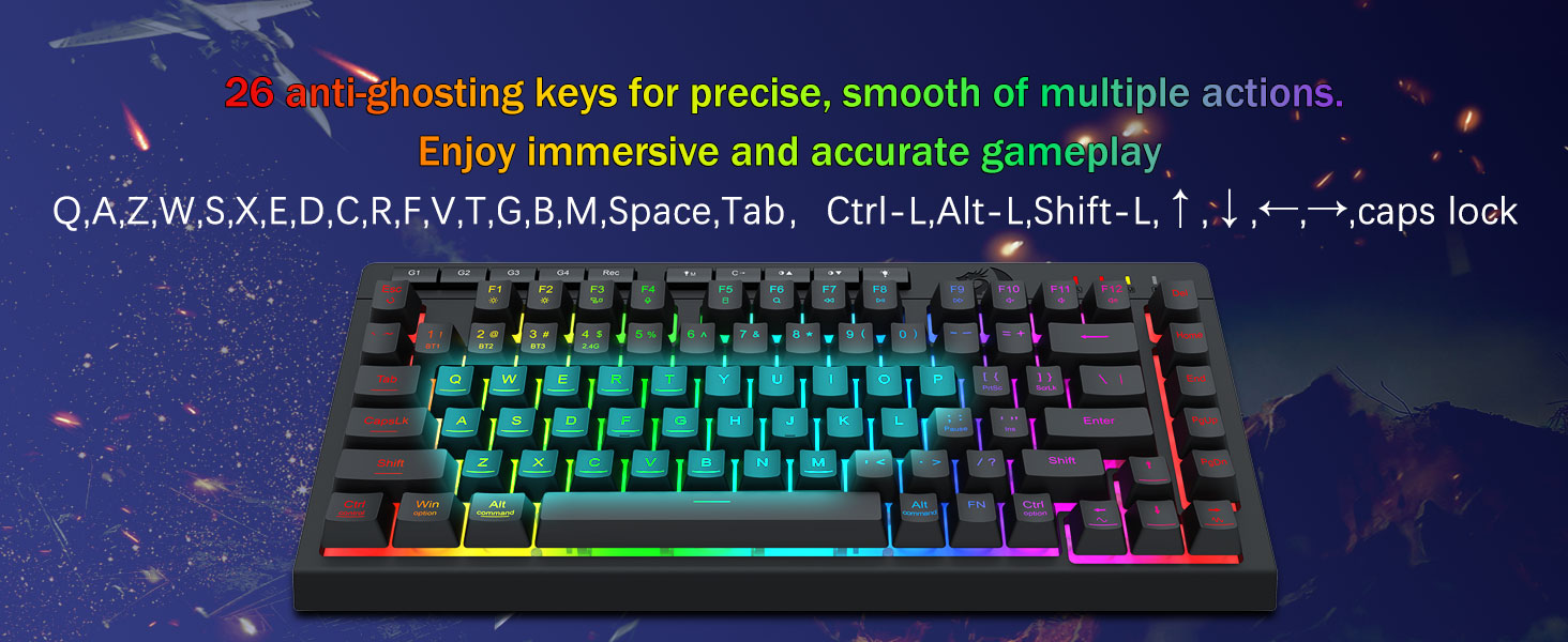 Fesselnde RGB-Beleuchtung und anpassbare Atmosphäre- Entfesseln Sie 16,8 Millionen RGB-Farben mit 8 voreingestellten Modi (Rainbow Wave, Reactive Typing) + 6 DIY-Profilen.