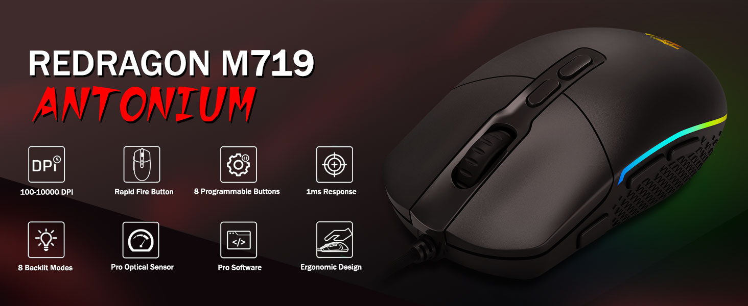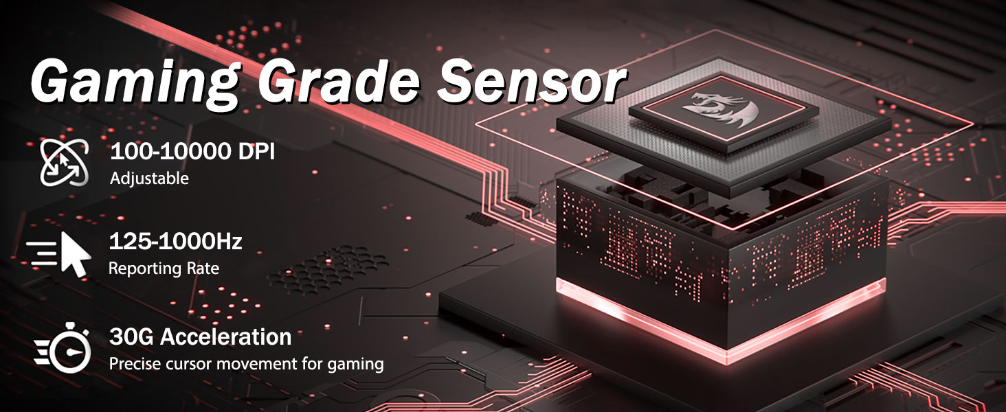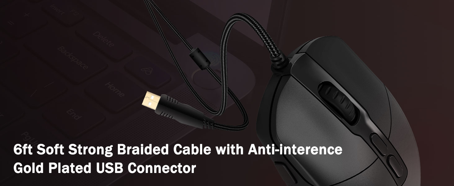 5 einstellbare DPI-Stufen und 4 Abfrageraten- Die M719-Maus ist mit 5 verfügbaren DPI-Stufen ausgestattet: DPI 400/800/1600/2400/4000. Einfacher Wechsel zwischen verschiedenen Spielanforderungen. DPI kann per Software um ±100 stufenlos von 100 bis 10.000 angepasst werden, um alle Ihre Anforderungen zu erfüllen. 4 Abfrageraten sind einstellbar: 125 Hz/250 Hz/500 Hz/1000 Hz, eine hohe Abfragerate sorgt für eine reibungslose und schnelle Bewegung.