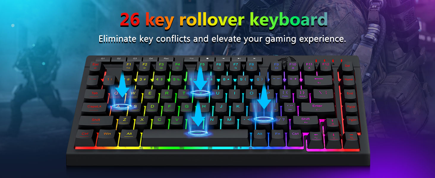 【Komfortables Gaming】Der klappbare Ständer der Tastatur, die hautfreundliche Beschichtung und die schwebenden Tastenkappen erhöhen den Tippkomfort. 26 Tasten Anti-Ghosting stellt sicher, dass jede Taste ausgelöst werden kann. Die WIN-Taste kann für Spiele deaktiviert werden. Diese Tastatur und Maus sind darauf ausgelegt, ein effizientes Spielerlebnis zu bieten und gleichzeitig maximalen Komfort zu gewährleisten