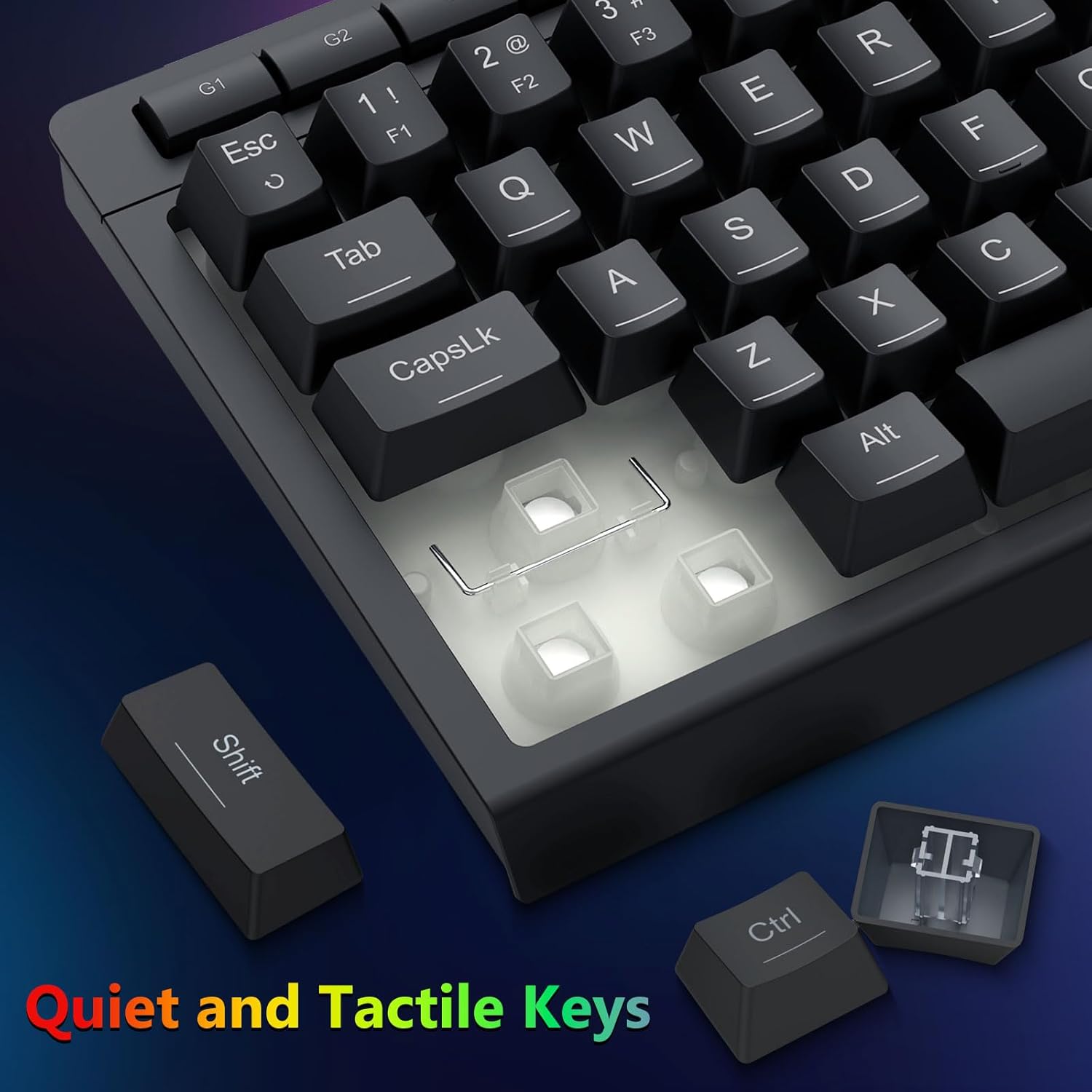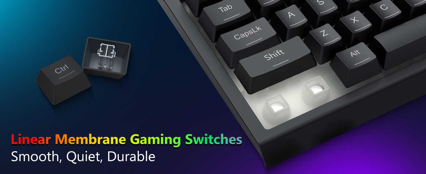 Die Tasten sind so konstruiert, dass sie ein gleichmäßiges Feedback und eine ausgewogene Betätigung bieten. Dies gewährleistet präzises Tippen und zuverlässige Eingaben beim Spielen oder im Bürogebrauch.