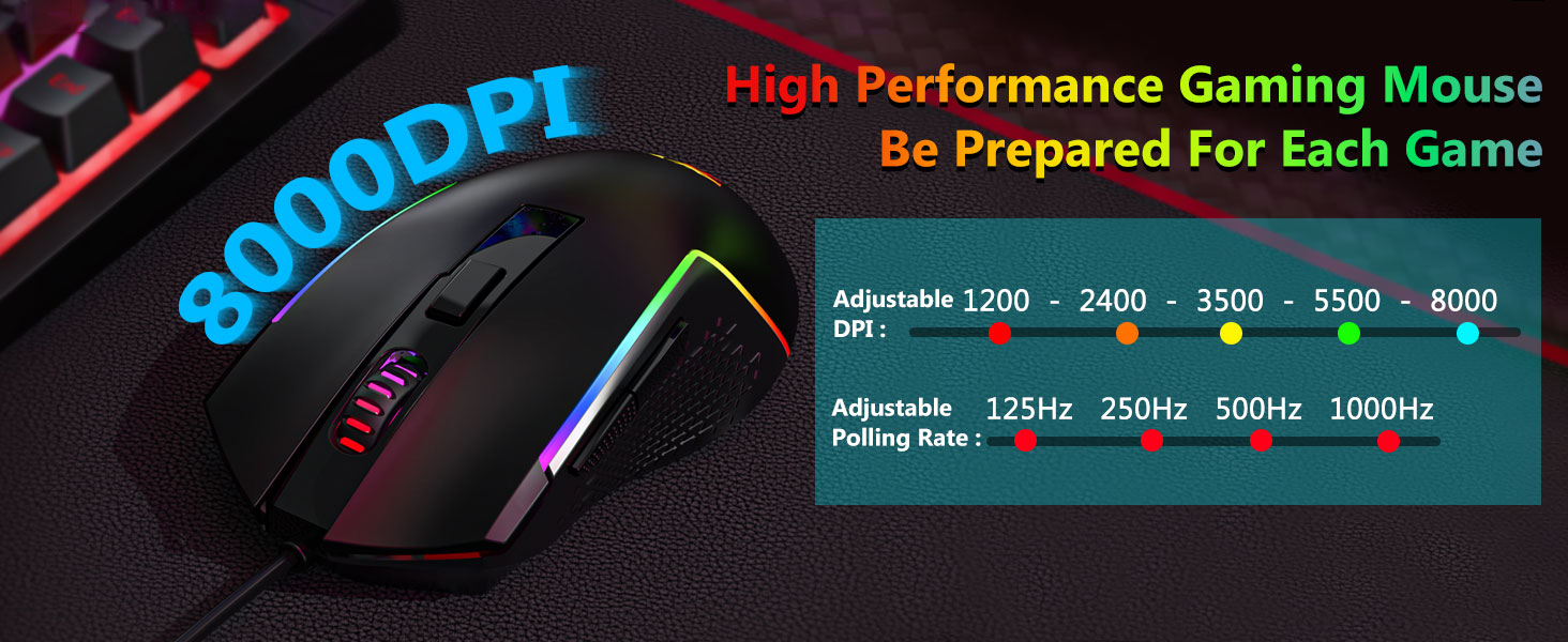 Die mitgelieferte Maus ist mit einem optischen Sensor ausgestattet, der eine stabile Verfolgung und reibungslose Cursorbewegungen unterstützt. Durch anpassbare DPI-Einstellungen können Benutzer die Empfindlichkeit an verschiedene Aufgaben anpassen.