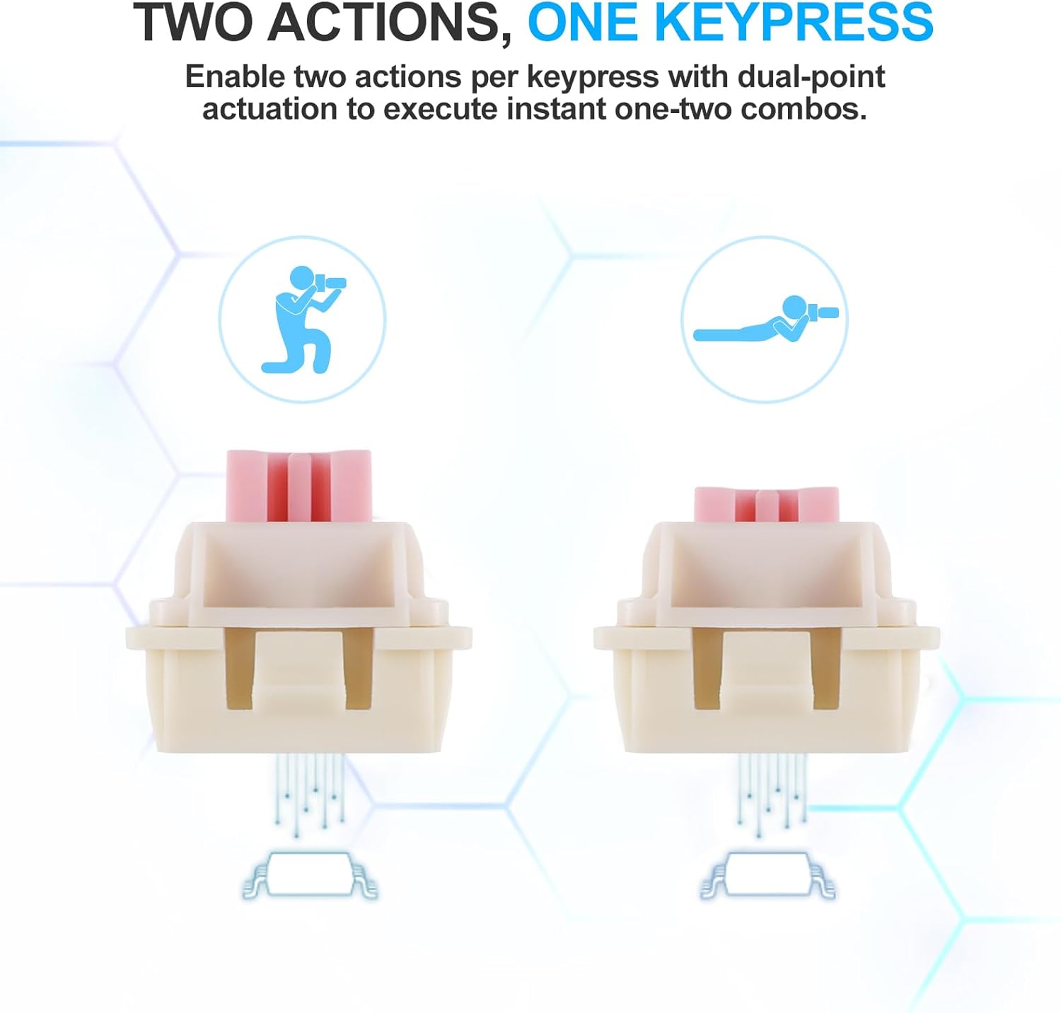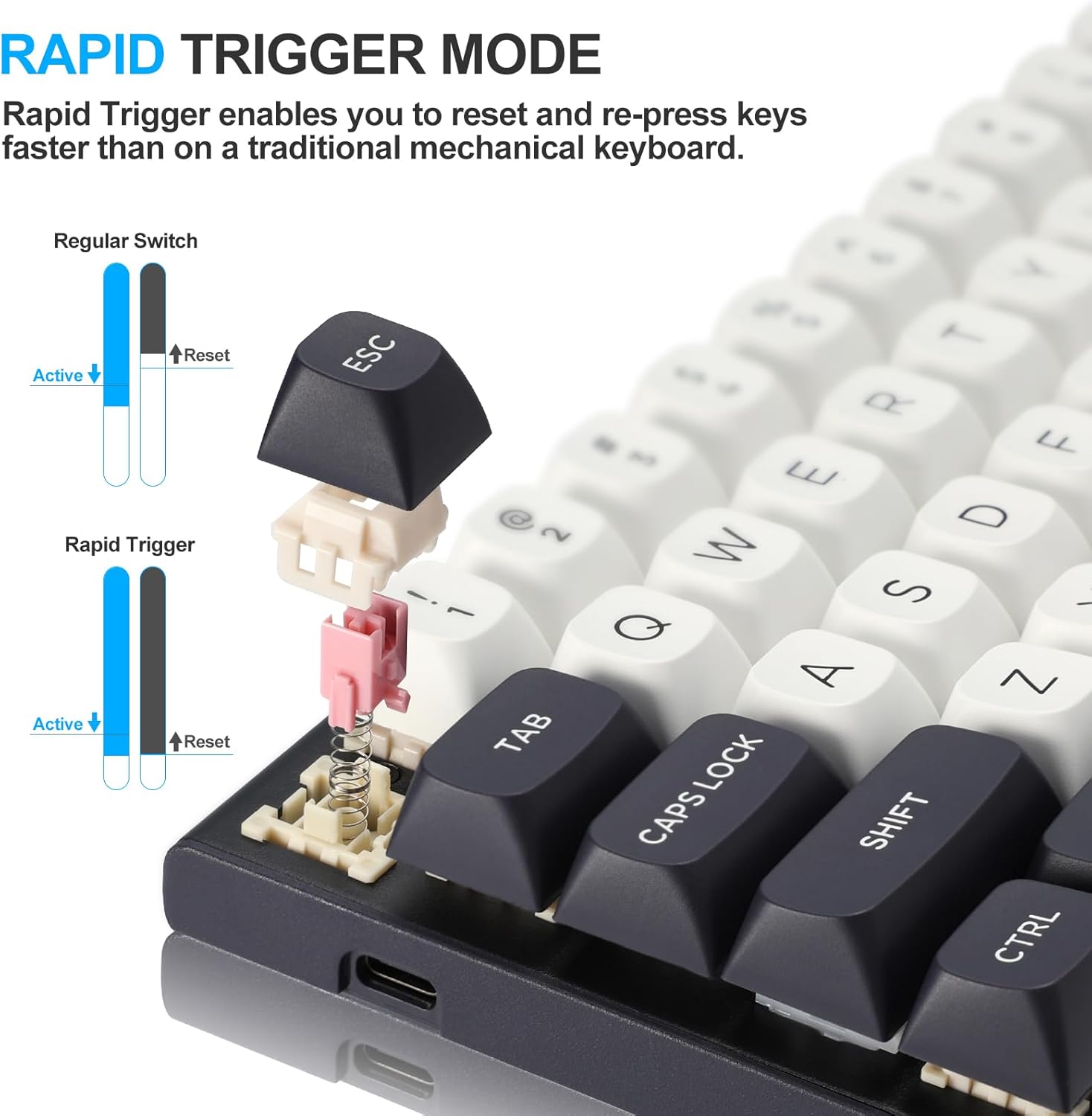 Durch die Schnellauslösefunktion können Tasten beim Loslassen sofort zurückgesetzt werden, anstatt auf einen festen Rücksetzpunkt zu warten. Dies ermöglicht schnellere wiederholte Tastenanschläge und eine präzisere Steuerung, was besonders nützlich in kompetitiven Gaming-Szenarien wie FPS oder rhythmusbasierten Spielen ist.