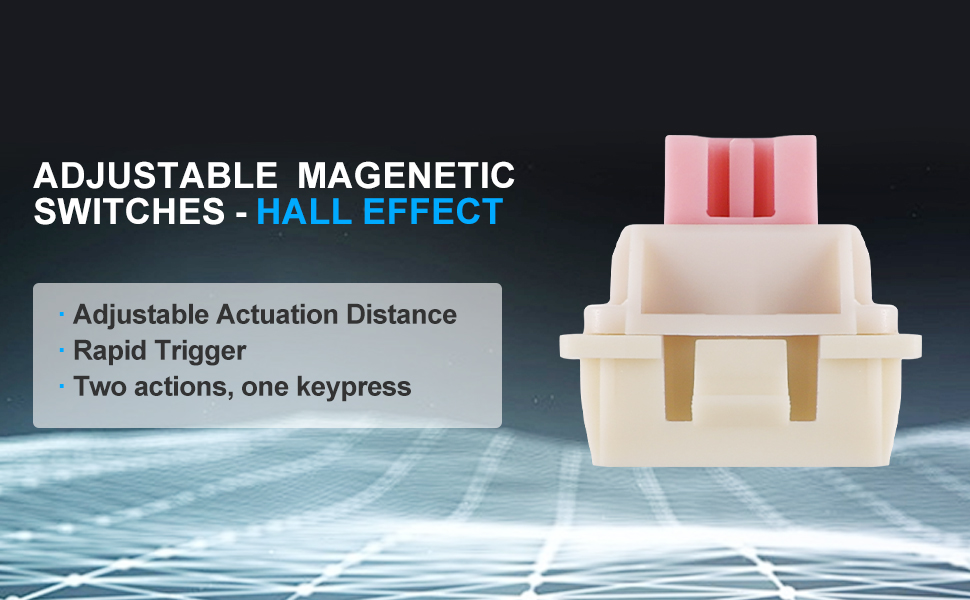 Magnetschalter nutzen Hall-Effekt-Sensoren zur Erkennung von Tastenbewegungen und bieten so einstellbare Betätigungspunkte und eine konsistente Eingabeerkennung. Im Gegensatz zu herkömmlichen mechanischen Schaltern reduziert diese Technologie den physischen Verschleiß und sorgt für Langzeitstabilität.
