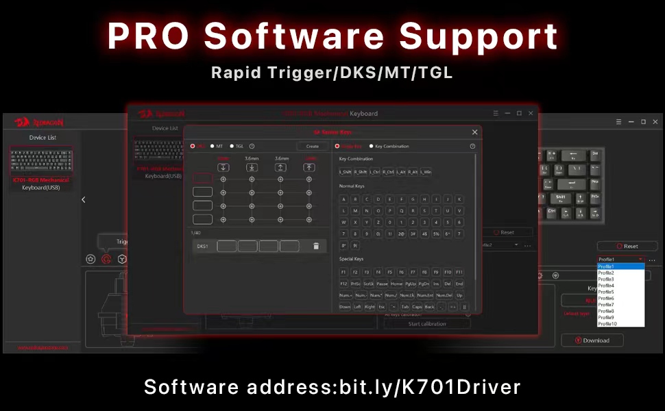Die weiß/blau-schwarze K701 Rapid Trigger 60 % kabelgebundene mechanische Gaming-Tastatur mit Magnetschalter bietet ein reaktionsschnelles Tipperlebnis, das sich an unterschiedliche Benutzerpräferenzen anpasst. Durch die einstellbaren Betätigungspunkte können Benutzer die Empfindlichkeit je nach Bedarf feinabstimmen.