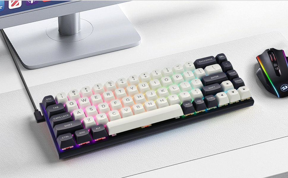 Die Tastatur verfügt über ein minimalistisches Design mit einem klaren Weiß- oder Blau-Schwarz-Farbschema, das sowohl für Gaming- als auch für professionelle Umgebungen geeignet ist. Die kompakte Struktur ermöglicht Benutzern einen besser organisierten Arbeitsplatz.