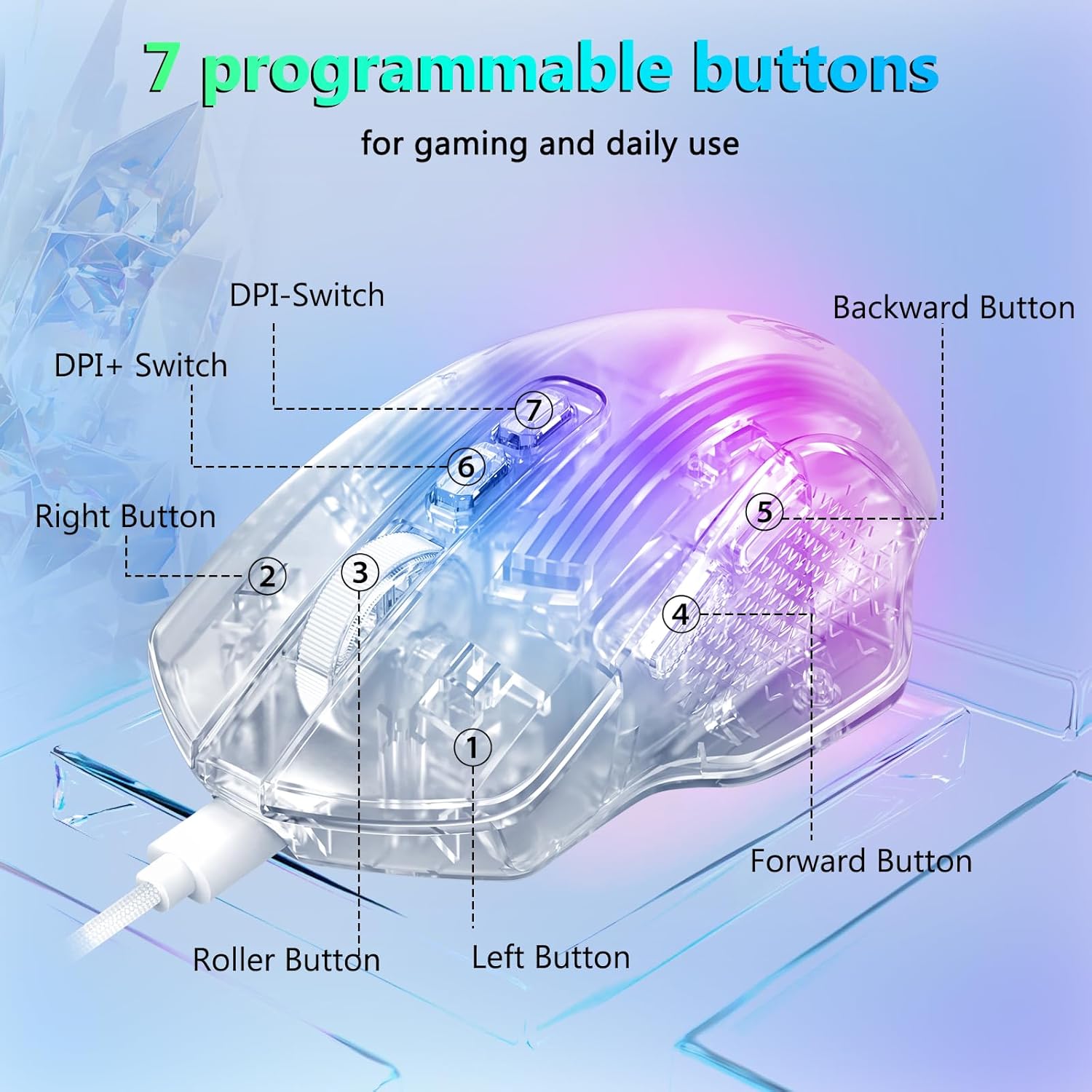 Die weiße CHUANGQUAN M695CT kabelgebundene Gaming-Maus mit 24.000 DPI und 8 RGB-LED-Hintergrundbeleuchtung bietet ultrapräzises Tracking, reibungslose Steuerung und dynamische Beleuchtung, entwickelt für Gamer, die Geschwindigkeit, Genauigkeit und Stil verlangen.