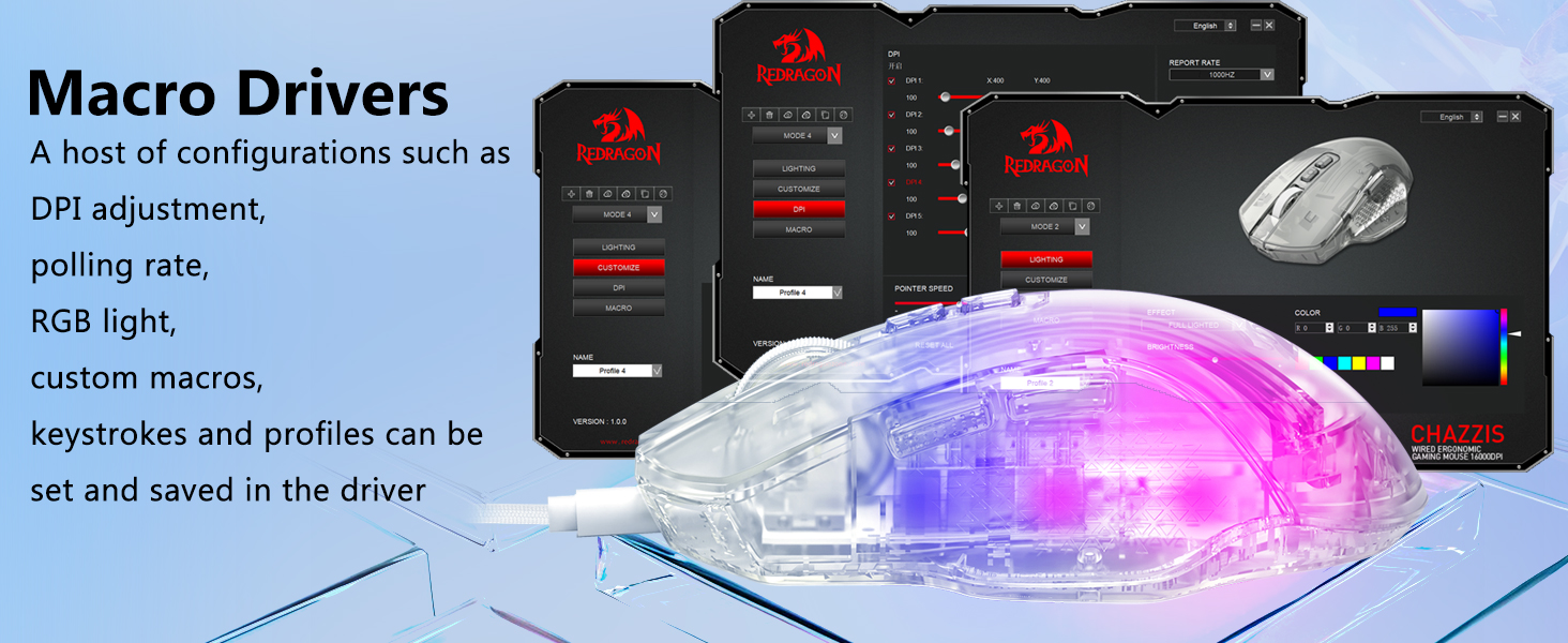 Die Maus verfügt über acht RGB-Lichteffekte, die die Optik verbessern, ohne die Leistung zu beeinträchtigen. Benutzer können je nach Einrichtung oder persönlichen Vorlieben zwischen den Beleuchtungsmodi wechseln.