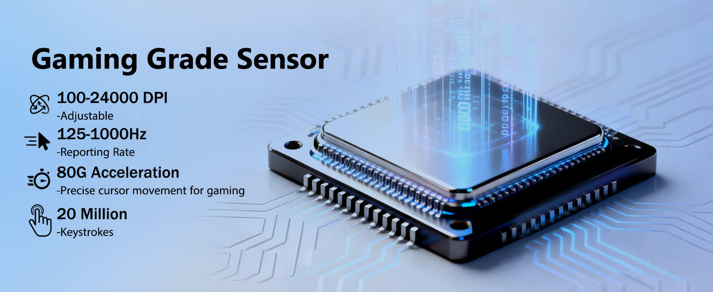 Die Maus ist mit einem fortschrittlichen optischen Sensor ausgestattet, der bis zu 24.000 DPI erreichen kann. Dadurch können Benutzer die Empfindlichkeit an verschiedene Szenarien anpassen, vom präzisen Zielen in Spielen bis hin zu schnellen Cursorbewegungen auf großen Bildschirmen.
