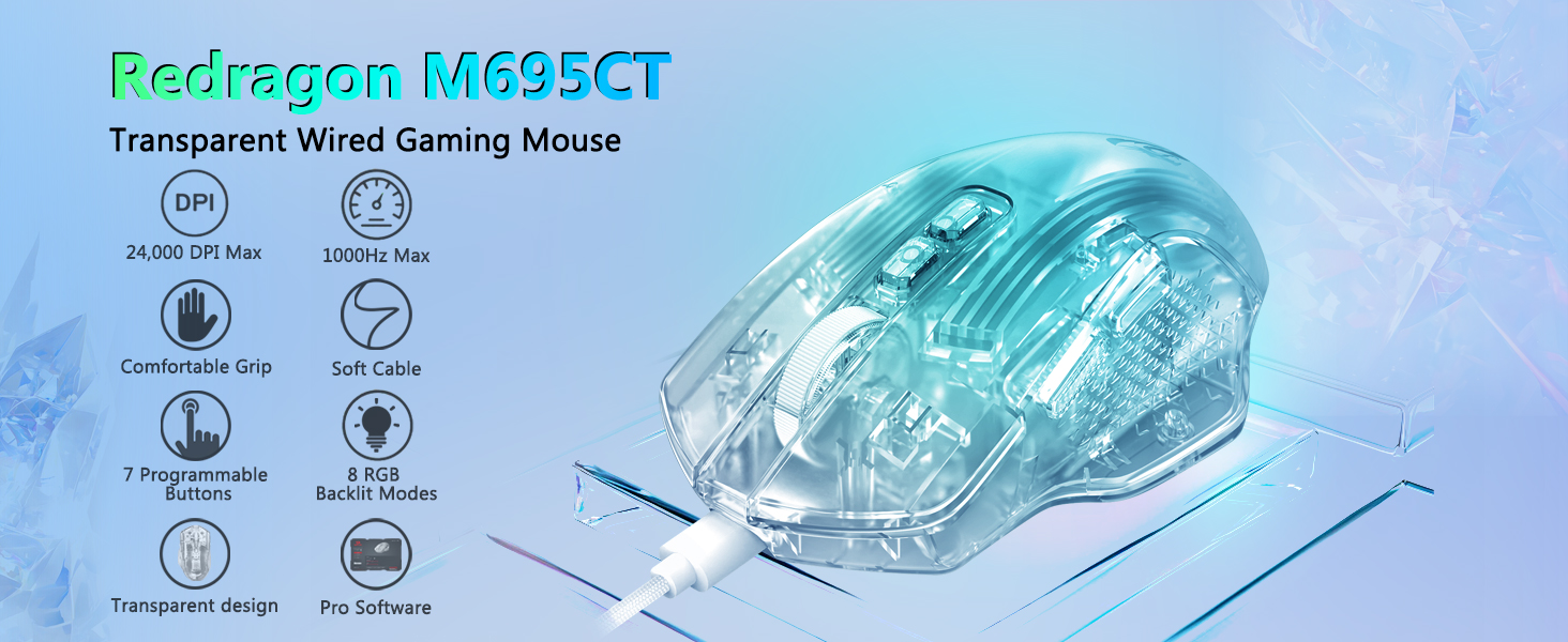 Mit einer zuverlässigen Kabelverbindung und praktischen Funktionen ist die weiße kabelgebundene Gaming-Maus M695CT mit 24.000 DPI und 8 RGB-LED-Hintergrundbeleuchtung eine zuverlässige Wahl für Benutzer, die in modernen Computerumgebungen konsistente Kontrolle und effiziente Leistung suchen.